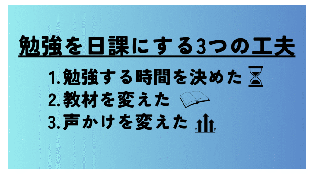 それは、私が「やる気を出させよう」とするのをやめて、勉強が自然にできる仕組みを作ったからでした。